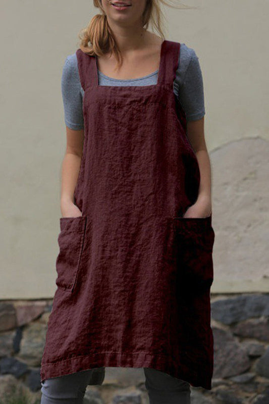 Casual Simplicity Solid Pocket Buckle V Neck Vest Dress Dresses