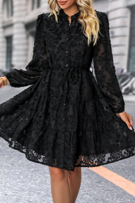 Elegant Solid Flounce Mandarin Collar A Line Dresses