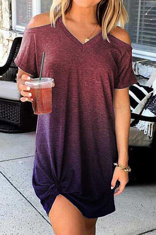 Street Tie Dye Hollowed Out V Neck Dresses