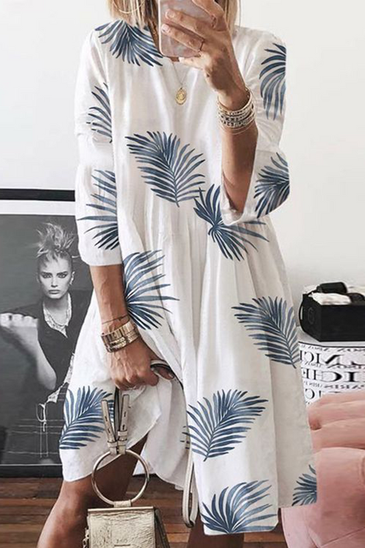 Casual Print Split Joint O Neck Straight Dresses(9 colors)