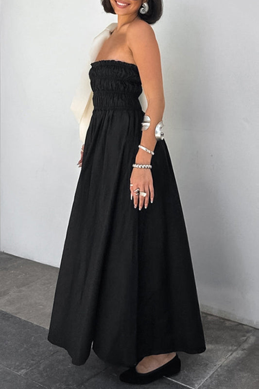 Vacation Floral Print Zipper Contrast Strapless Long Dresses