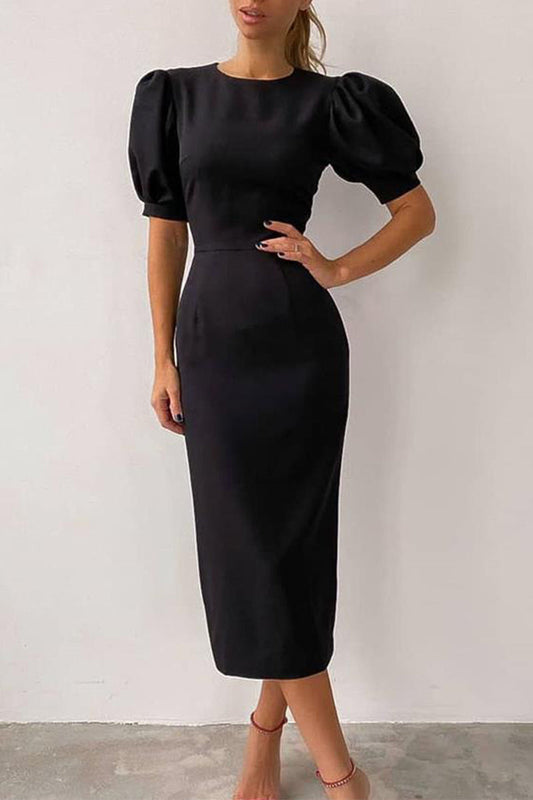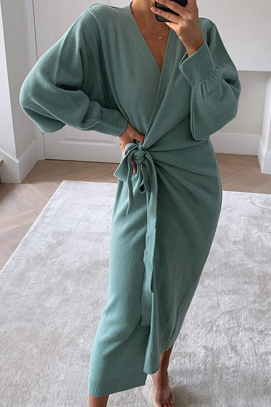 Elegant Solid Slit Weave Turtleneck Long Sleeve Dresses