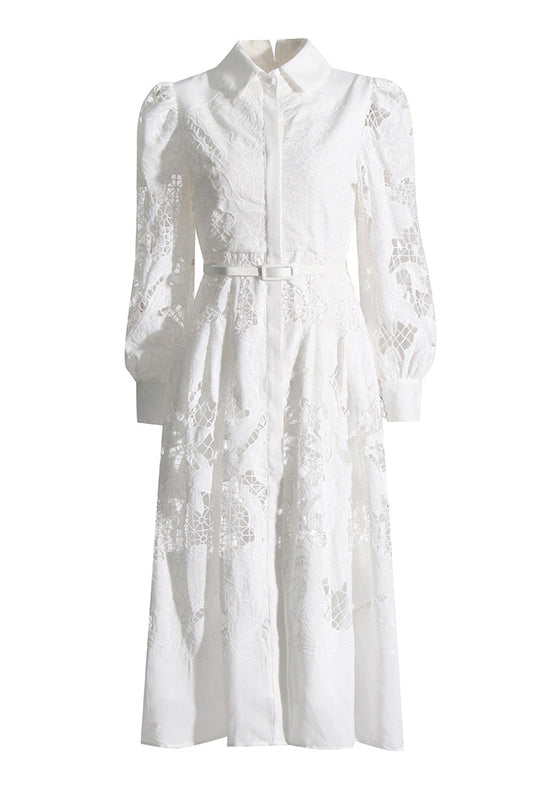 Elegant Solid Embroidered Hollowed Out Turndown Collar A Line Dresses