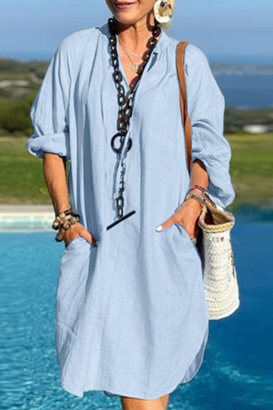 Casual Solid V Neck Straight Dresses(3 Colors)