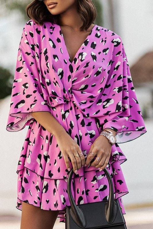 Casual Print Patchwork V Neck Cake Skirt Dresses