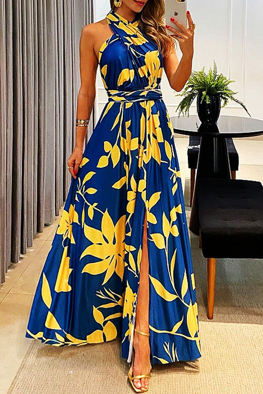 Vintage Elegant Floral Frenulum Halter Printed Dress Dresses