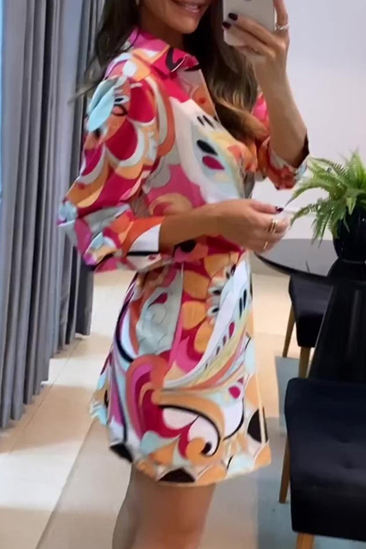 Casual Print Patchwork Shirt Collar Long Sleeve Two Pieces