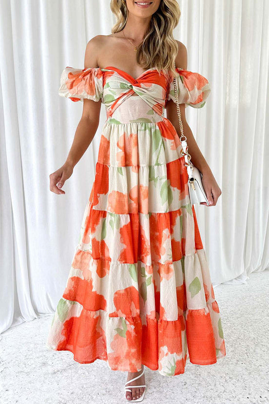 Sweet Elegant Floral Hollowed Out Off the Shoulder Printed Dress Dresses