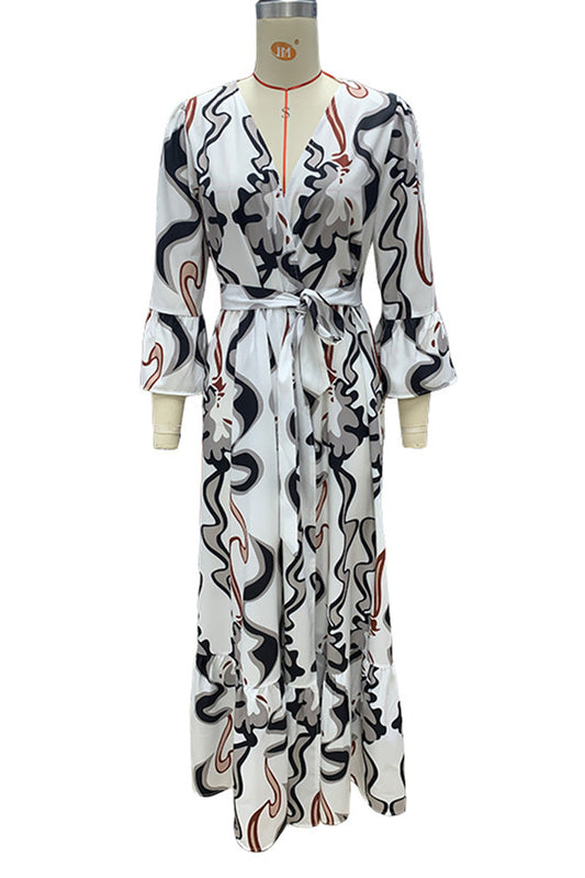 Casual Street Geometric Print Ruffle Slit V Neck A Line Dresses