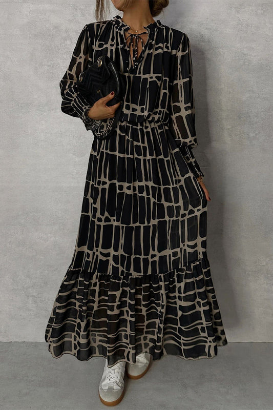 Elegant Geometric Print Lace Up V Neck A Line Dresses