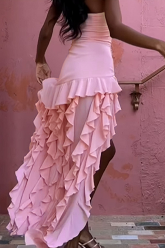Sexy Solid Color Patchwork Irregular Stringy Selvedge Strapless Irregular Dresses