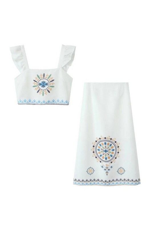 Casual Vacation Floral Print Ruffle Square Neck Two Pieces