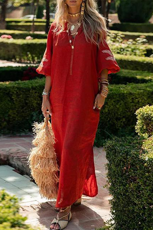 Casual Pocket Slit V Neck Long Dresses(7 Colors)