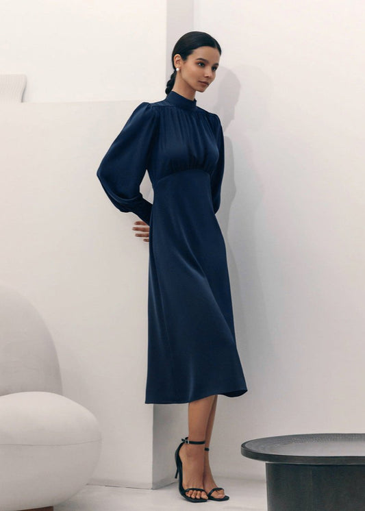 Ruffled V-Neck Long Sleeve A-Line Dress