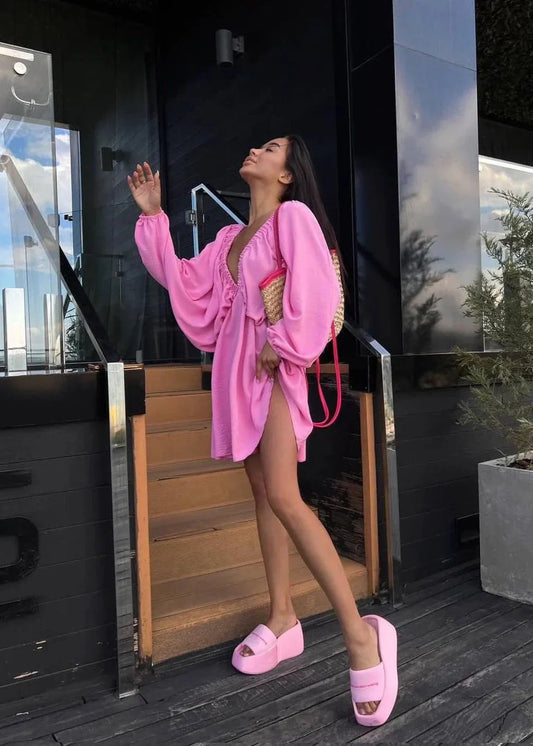 Off-Shoulder Mini Flare Dress with Long Sleeves