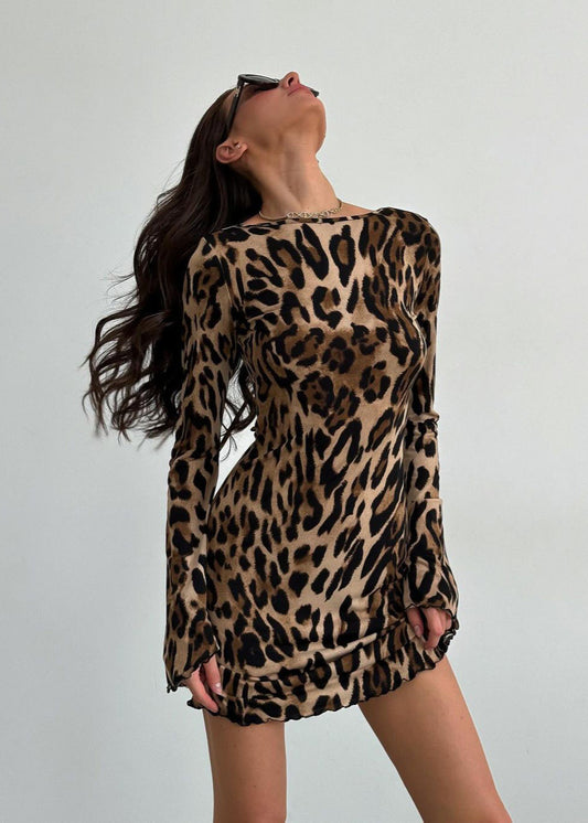 Wild Instincts Mini Dress – Leopard Print with Open Back
