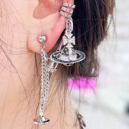 Planet cross o ring 1 piece drop earrings