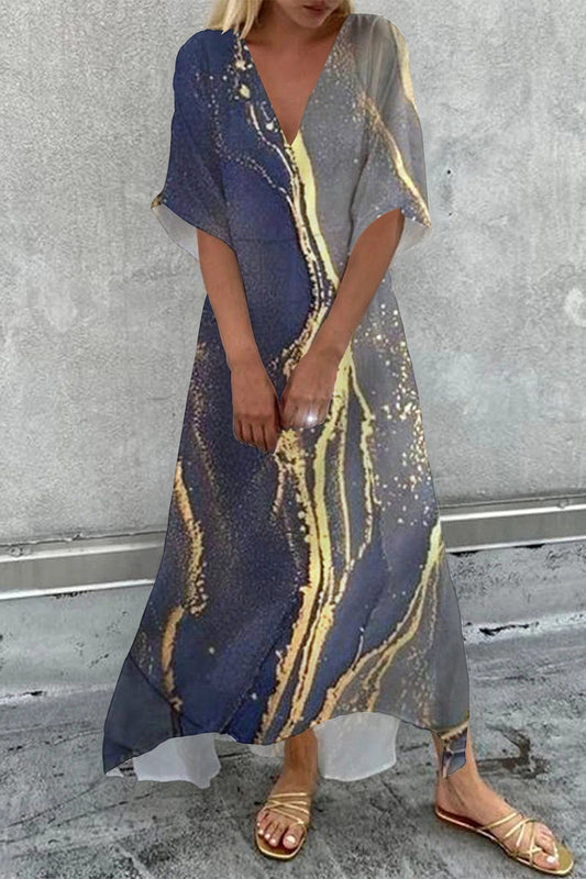 Casual Print Patchwork V Neck Irregular Dress Dresses