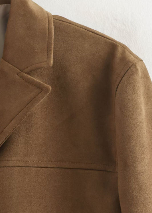 Delora - Suede Button-Front Blazer with Patch Pockets
