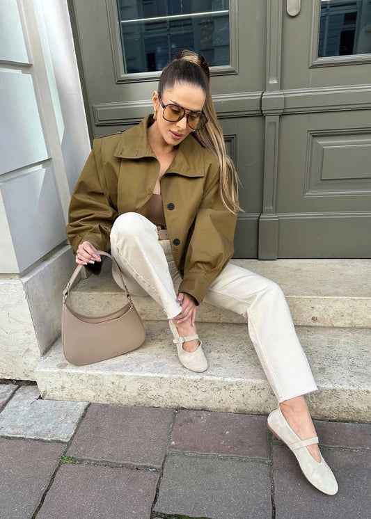 Cropped Button-Up Jacket with Epaulettes – Khaki