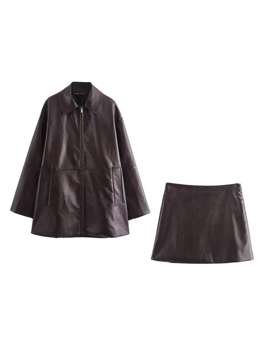 Sleeveless Zipper Waist Coat Jacket & Skirt Coord Set