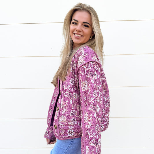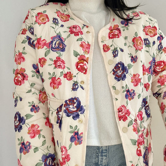 Retro Print Loose Stand Collar Jacket High Waist Shorts Coord Set