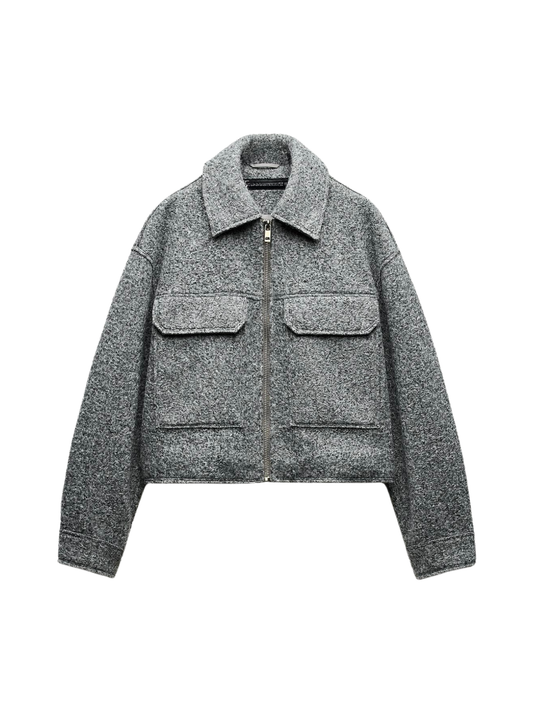 Casual Style Bouclé Grey Jacket