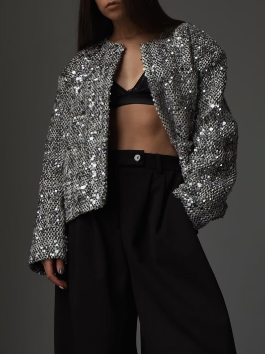 Elegant Tweed Sequined Jacket