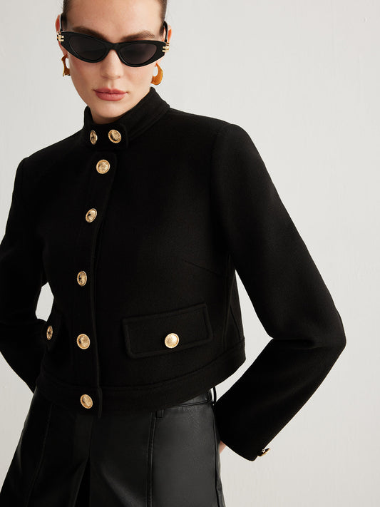Stand Collar Button Tweed Short Jacket