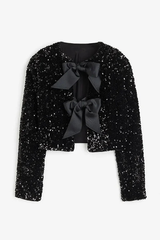 Two Ways To Celebrate Tie-front Bow Sequined Jacket