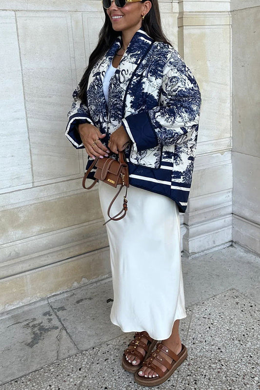 Fashion Printed Loose Casual Cardigan Short Quilted Cotton Jacket