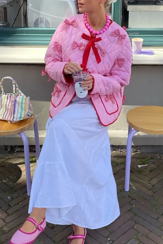 Printed Reversible Quilted Cardigan Jacket with Color Matching Small Cotton-padded Jacket