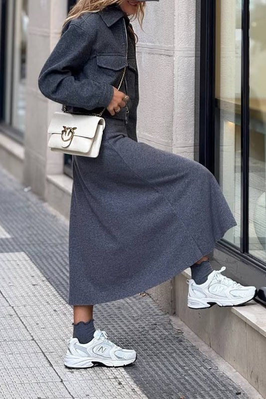 Ruffled Jacket & Flared Skirt Knit Matching Set