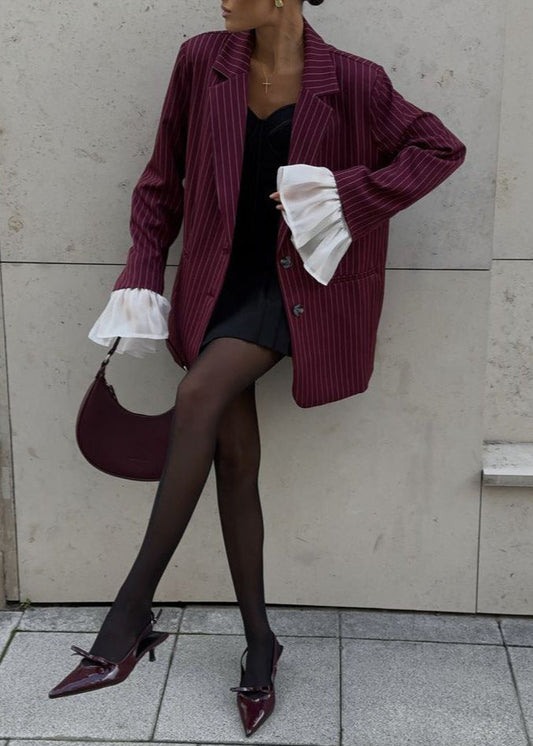 Maroon Pinstripe Blazer with Statement Sleeves