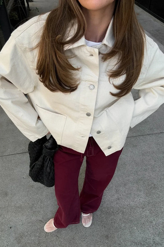 Vintage Twill Denim Solid Loose Lapel Jacket