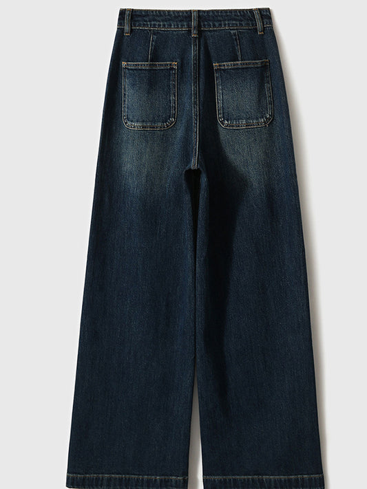 Blue Vintage Washed Wide Legs Boyfriend Jeans