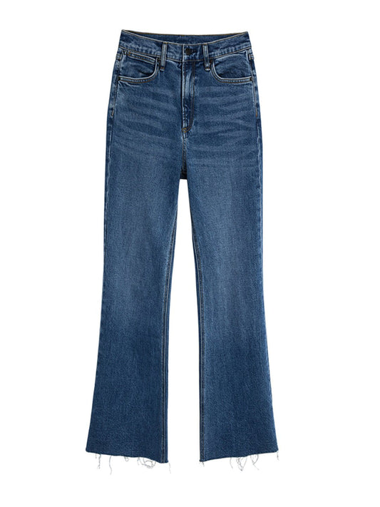 Street Solid Patchwork High Waist Boot Cut Denim Jeans
