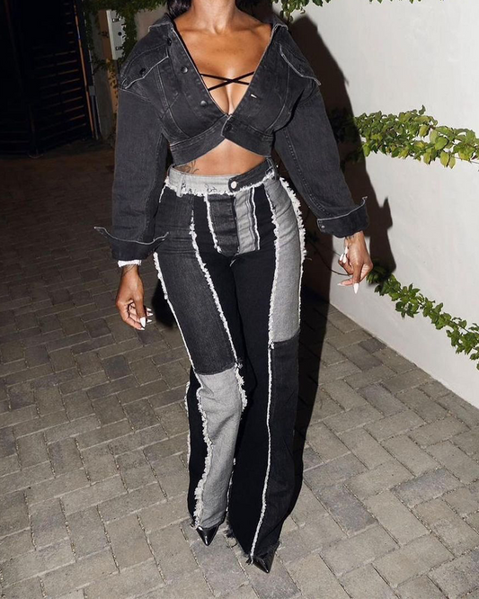 Wide-Leg Patchwork Jeans
