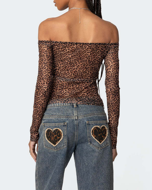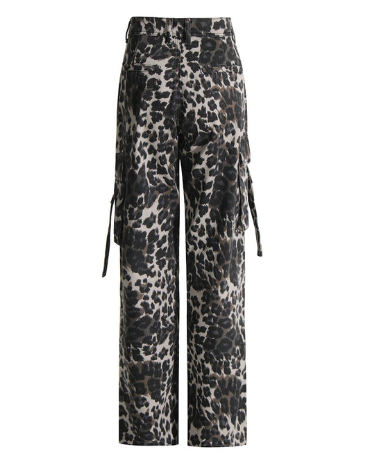 Leopard Print High-Rise Straight-Leg Cargo Pants With Pocket Jeans
