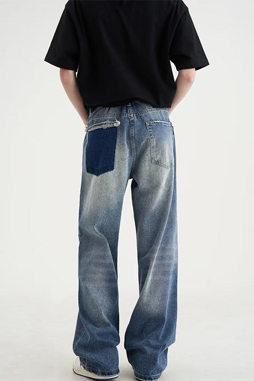 Patchwork Pockets Denim Wide Leg Boyfriend Jeans