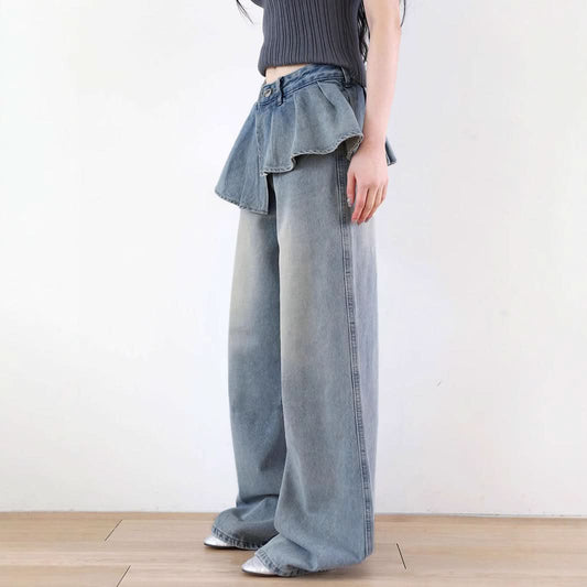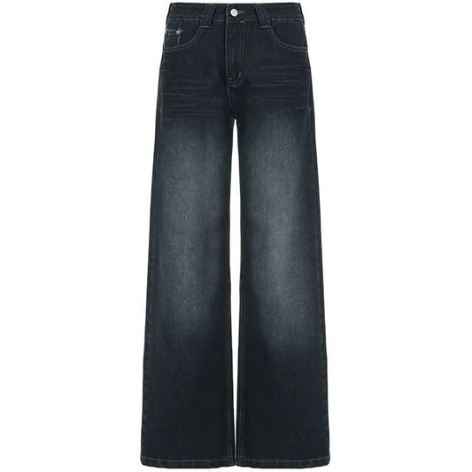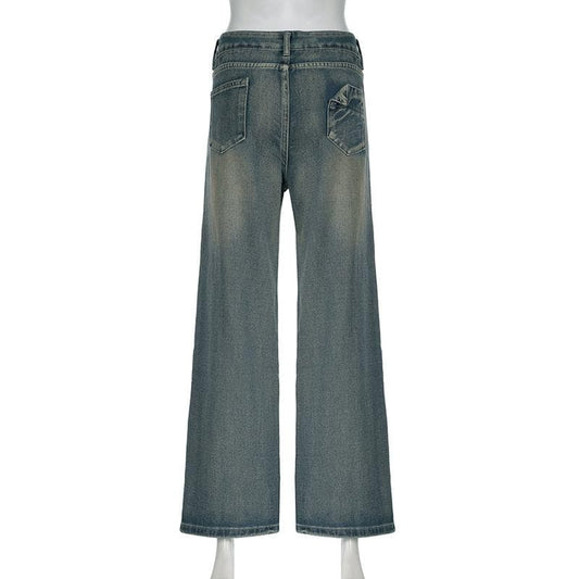 Patchwork Pockets Denim Wide Leg Boyfriend Jeans