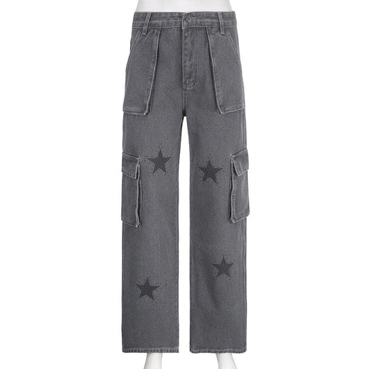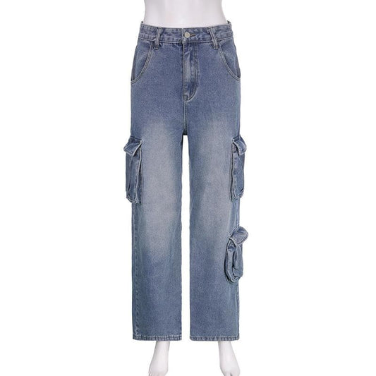 Hip High-Waisted Multi-Pocket Cargo Jeans Stretch Women’s Pants
