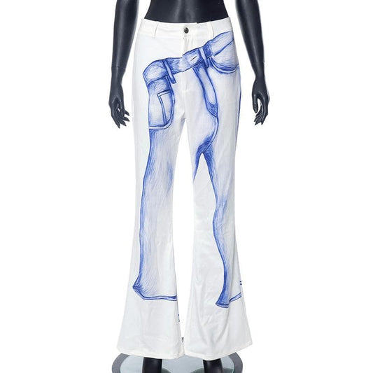 Contrast denim star pattern zip-up pocket jeans-final-sale