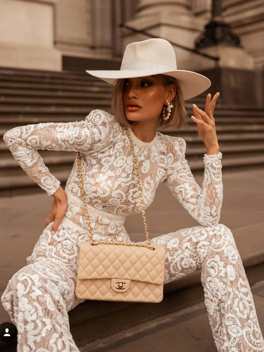 Bellflare Waist-Tie Romper - White Long Sleeve Mini Jumpsuit