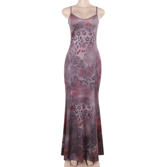 Leopard print v neck backless cami maxi dress