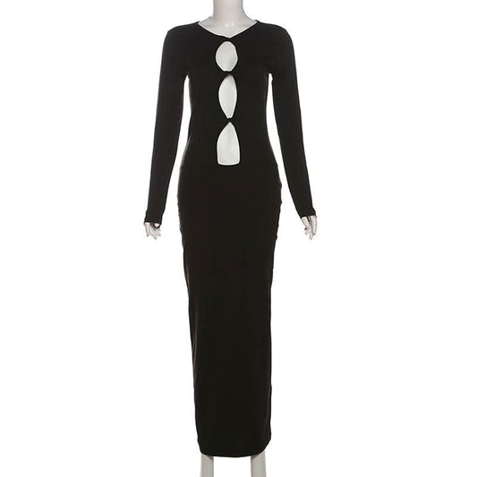 Long sleeve hollow out cut out maxi dress