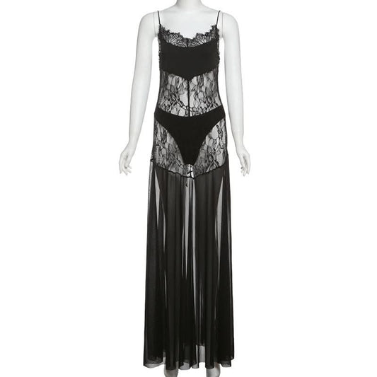 Mesh lace 2 piece cami maxi dress