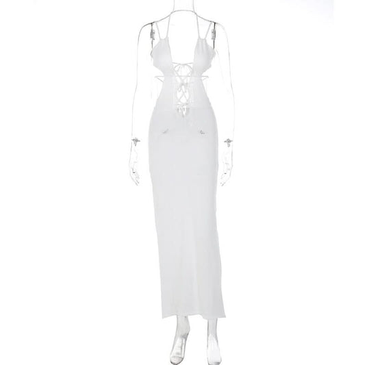 Hollow out backless sleeveless low cut solid cut out maxi dress-final-sale