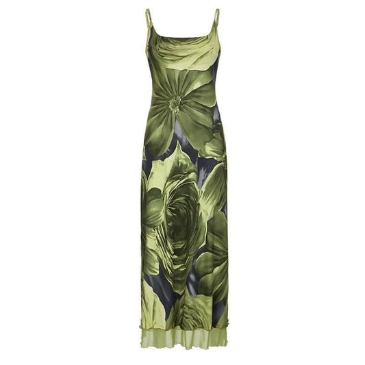 U neck flower print mesh cami maxi dress-final-sale