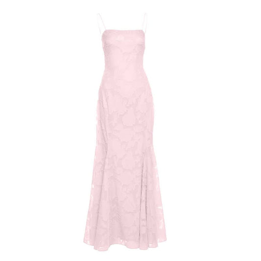 Lace square neck self tie solid cami maxi dress